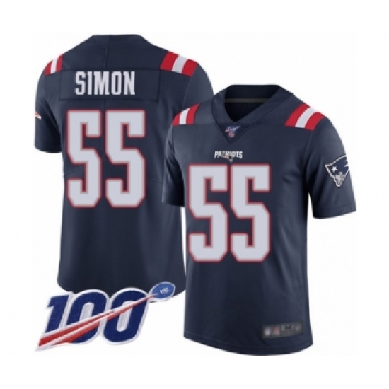 Youth New England Patriots #55 John Simon Limited Navy Blue Rush Vapor Untouchable 100th Season Football Jersey