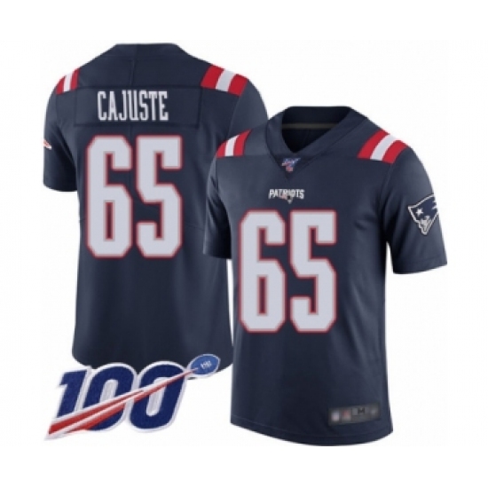 Men's New England Patriots #65 Yodny Cajuste Limited Navy Blue Rush Vapor Untouchable 100th Season Football Jersey