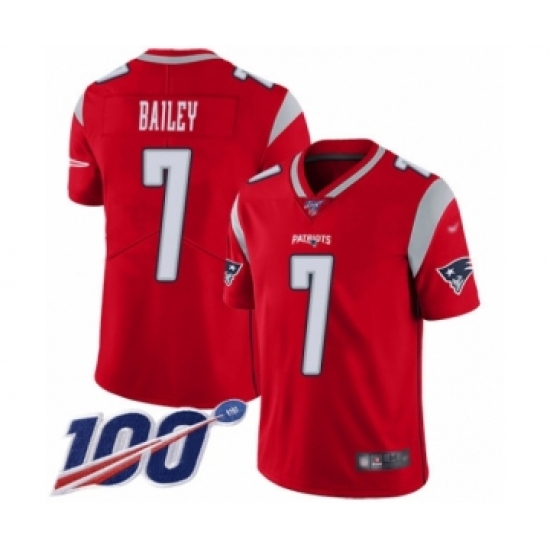 >Youth New England Patriots #7 Jake Bailey Limited Red Inverted Legend 100th Season Football Jersey