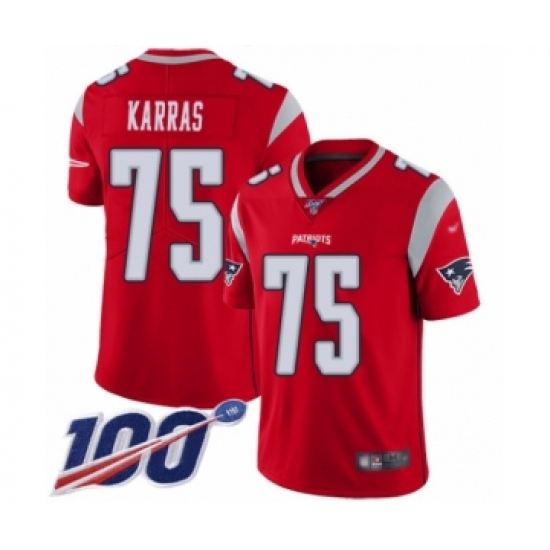Men's New England Patriots #75 Ted Karras Red Alternate Vapor Untouchable Limited Player 100th Season Football Jersey