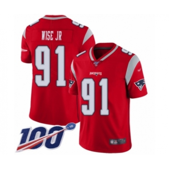 Youth New England Patriots #91 Deatrich Wise Jr Limited Red Inverted Legend 100th Season Football Jersey