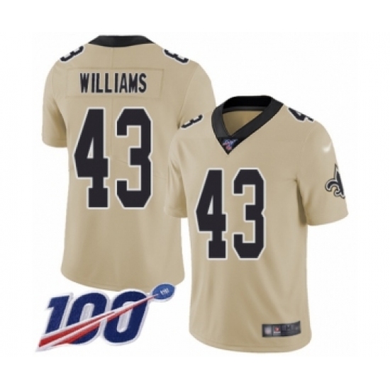 >Youth New Orleans Saints #43 Marcus Williams Limited Gold Inverted Legend 100th Season Football Jersey
