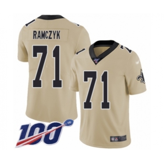 >Youth New Orleans Saints #71 Ryan Ramczyk Limited Gold Inverted Legend 100th Season Football Jersey