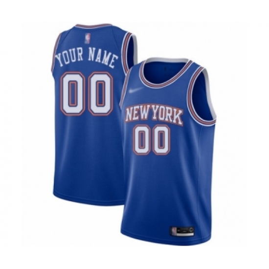Men's New York Knicks Customized Authentic Blue Basketball Jersey - Statement Edition