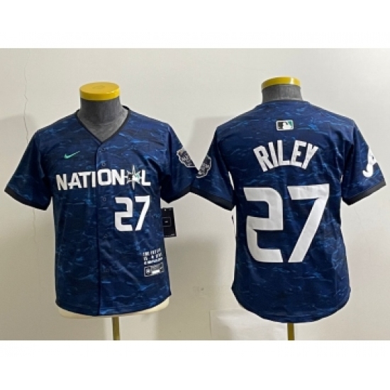 Youth Nike Atlanta Braves #27 Austin Riley Number Royal 2023 All Star Cool Base Stitched Baseball Jersey