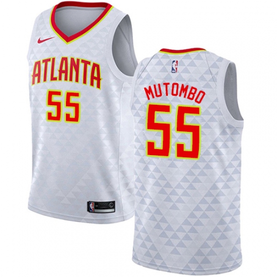 Home>NBA>Atlanta Hawks>Dikembe Mutombo>Youth Nike Atlanta Hawks #55 Dikembe Mutombo Authentic White NBA Jersey - Association Edition