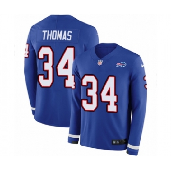 >Youth Nike Buffalo Bills #34 Thurman Thomas Limited Royal Blue Therma Long Sleeve NFL Jersey