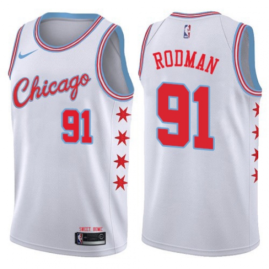 Home>NBA>Chicago Bulls>Dennis Rodman>Youth Nike Chicago Bulls #91 Dennis Rodman Swingman White NBA Jersey - City Edition