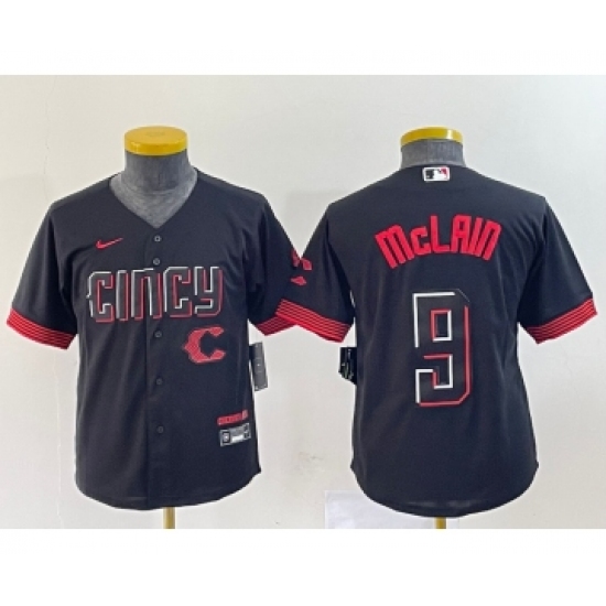 Youth Nike Cincinnati Reds #9 Matt McLain Black 2023 City Connect Cool Base Stitched Jersey1