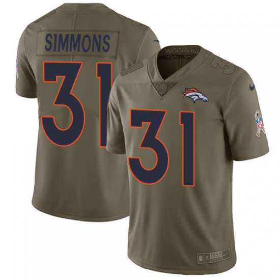 Home>NFL>Denver Broncos>Justin Simmons>Youth Nike Denver Broncos #31 Justin Simmons Limited Olive 2017 Salute to Service NFL Jersey