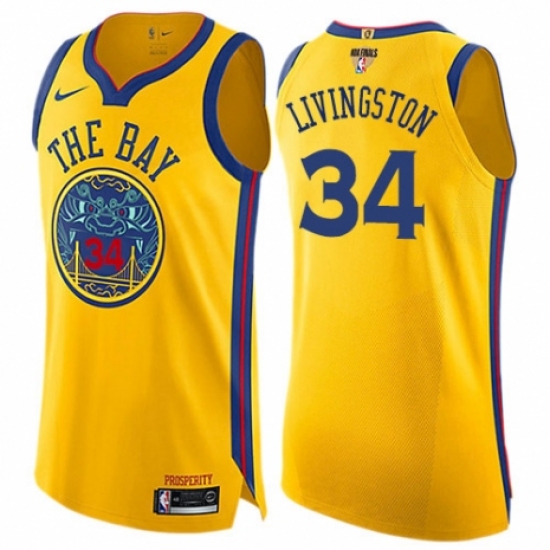 >Youth Nike Golden State Warriors #34 Shaun Livingston Swingman Gold 2018 NBA Finals Bound NBA Jersey - City Edition