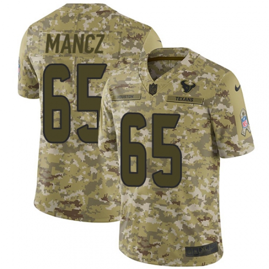 >Youth Nike Houston Texans #65 Greg Mancz Limited Camo 2018 Salute to Service NFL Jersey