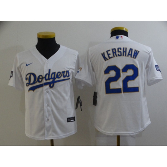 Youth Majestic Los Angeles Dodgers #22 Clayton Kershaw Replica White Home Cool Base MLB Jersey