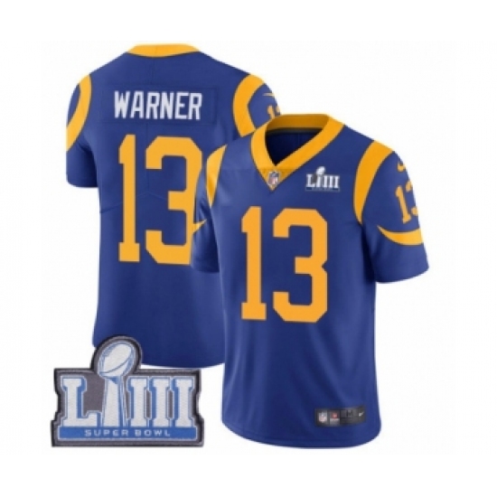 >Youth Nike Los Angeles Rams #13 Kurt Warner Royal Blue Alternate Vapor Untouchable Limited Player Super Bowl LIII Bound NFL Jersey