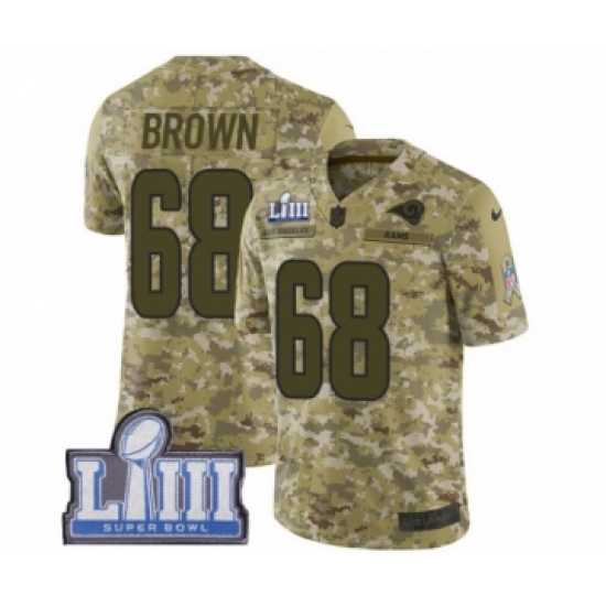 Women's Nike Los Angeles Rams #68 Jamon Brown Limited Camo 2018 Salute to Service Super Bowl LIII Bound NFL Jersey