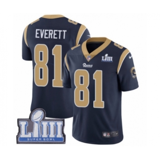 Youth Nike Los Angeles Rams #81 Gerald Everett Navy Blue Team Color Vapor Untouchable Limited Player Super Bowl LIII Bound NFL Jersey