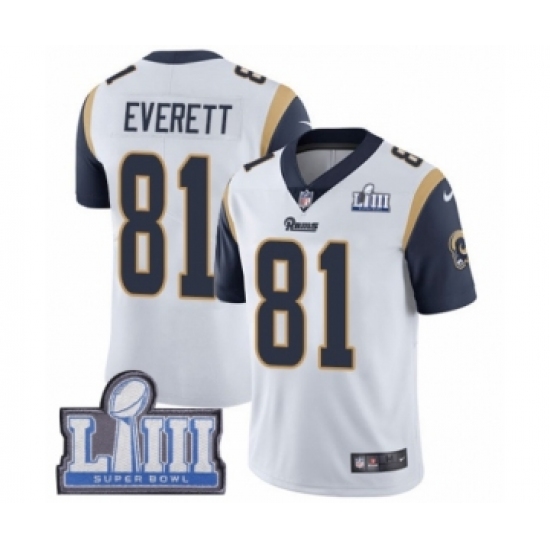 Youth Nike Los Angeles Rams #81 Gerald Everett White Vapor Untouchable Limited Player Super Bowl LIII Bound NFL Jersey
