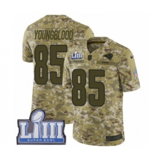 >Youth Nike Los Angeles Rams #85 Jack Youngblood Limited Camo 2018 Salute to Service Super Bowl LIII Bound NFL Jersey