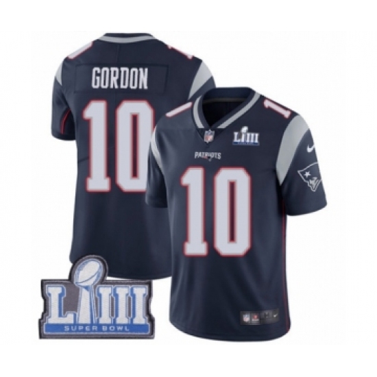 >Youth Nike New England Patriots #10 Josh Gordon Navy Blue Team Color Vapor Untouchable Limited Player Super Bowl LIII Bound NFL Jersey