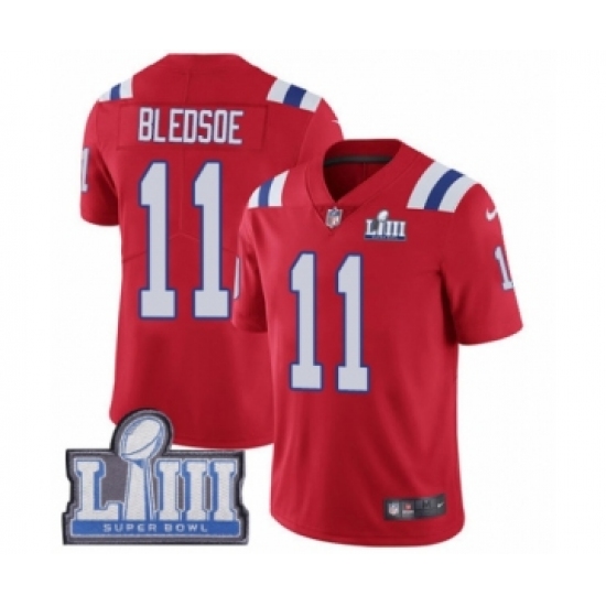 >Youth Nike New England Patriots #11 Drew Bledsoe Red Alternate Vapor Untouchable Limited Player Super Bowl LIII Bound NFL Jersey