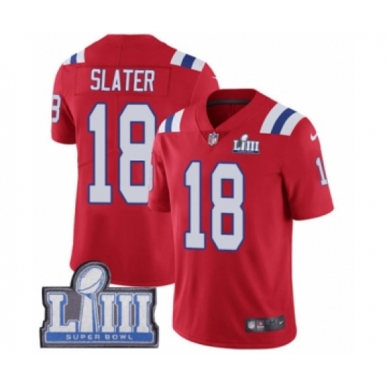 >Youth Nike New England Patriots #18 Matthew Slater Red Alternate Vapor Untouchable Limited Player Super Bowl LIII Bound NFL Jersey