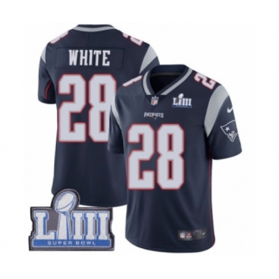 Men's Nike New England Patriots #28 James White Limited Navy Blue Rush Vapor Untouchable Super Bowl LIII Bound NFL Jersey