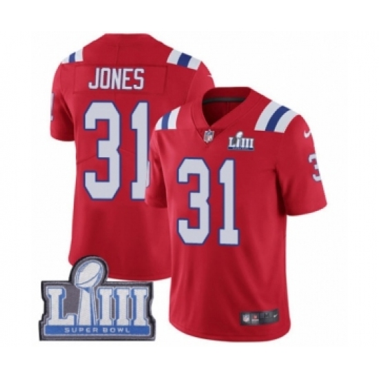 Youth Nike New England Patriots #31 Jonathan Jones Red Alternate Vapor Untouchable Limited Player Super Bowl LIII Bound NFL Jersey