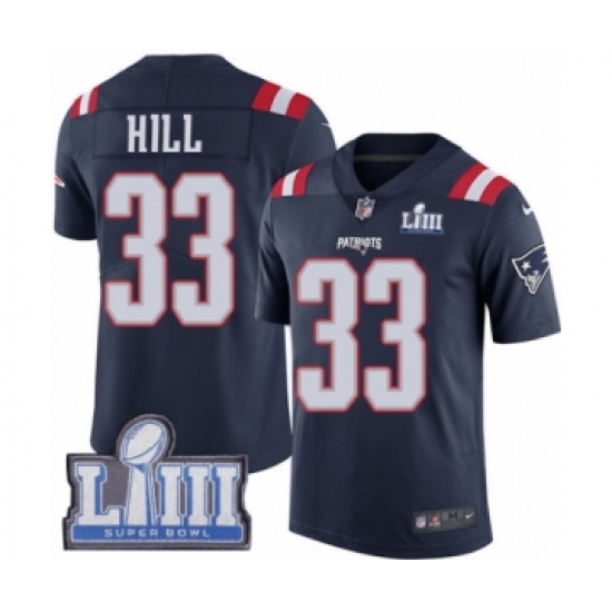 Men's Nike New England Patriots #33 Jeremy Hill Limited Navy Blue Rush Vapor Untouchable Super Bowl LIII Bound NFL Jersey