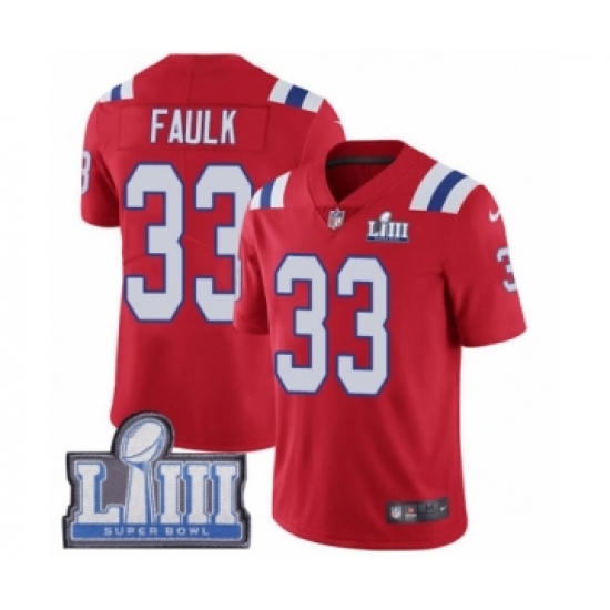 Women's Nike New England Patriots #33 Kevin Faulk Red Alternate Vapor Untouchable Limited Player Super Bowl LIII Bound NFL Jersey