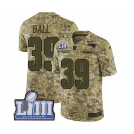 Men's Nike New England Patriots #39 Montee Ball Limited Camo 2018 Salute to Service Super Bowl LIII Bound NFL Jersey