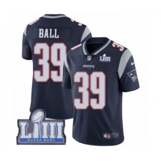 >Youth Nike New England Patriots #39 Montee Ball Navy Blue Team Color Vapor Untouchable Limited Player Super Bowl LIII Bound NFL Jersey