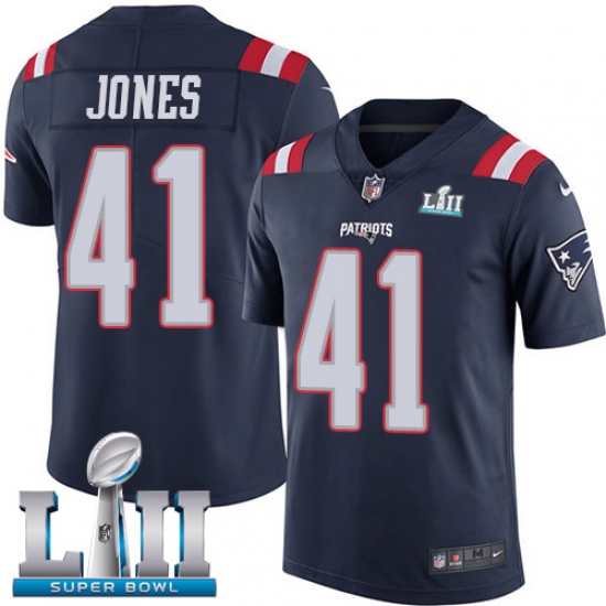 Home>NFL>New England Patriots>Cyrus Jones>Youth Nike New England Patriots #41 Cyrus Jones Limited Navy Blue Rush Vapor Untouchable Super Bowl LII NFL Jersey
