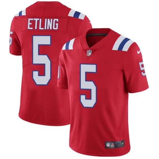 Men's Nike New England Patriots #5 Danny Etling Red Alternate Vapor Untouchable Limited Player Super Bowl LIII Bound NFL Jersey