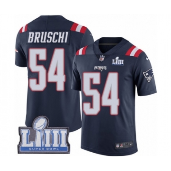 Youth Nike New England Patriots #54 Tedy Bruschi Limited Navy Blue Rush Vapor Untouchable Super Bowl LIII Bound NFL Jersey