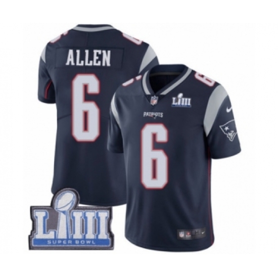 Youth Nike New England Patriots #6 Ryan Allen Navy Blue Team Color Vapor Untouchable Limited Player Super Bowl LIII Bound NFL Jersey