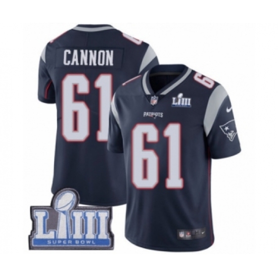 >Youth Nike New England Patriots #61 Marcus Cannon Navy Blue Team Color Vapor Untouchable Limited Player Super Bowl LIII Bound NFL Jersey