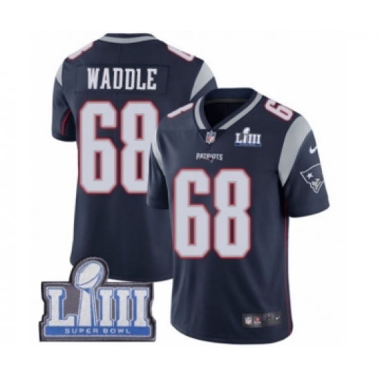 Youth Nike New England Patriots #68 LaAdrian Waddle Navy Blue Team Color Vapor Untouchable Limited Player Super Bowl LIII Bound NFL Jersey
