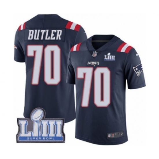 Youth Nike New England Patriots #70 Adam Butler Limited Navy Blue Rush Vapor Untouchable Super Bowl LIII Bound NFL Jersey