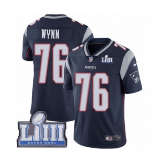 Youth Nike New England Patriots #76 Isaiah Wynn Navy Blue Team Color Vapor Untouchable Limited Player Super Bowl LIII Bound NFL Jersey