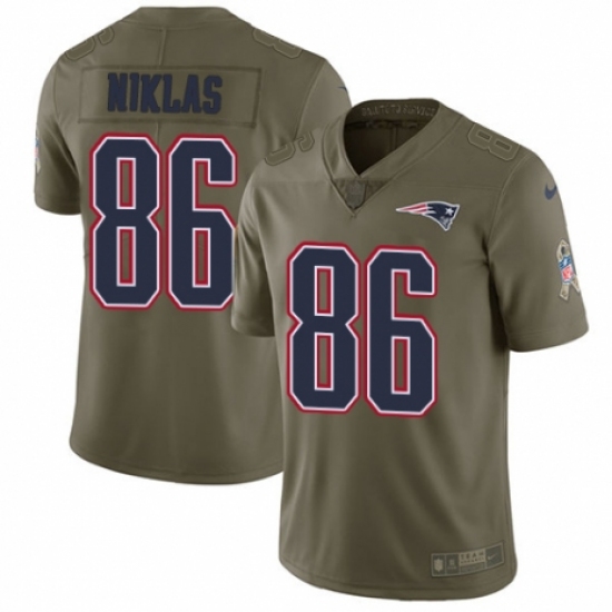 >Youth Nike New England Patriots #86 Troy Niklas Limited Olive 2017 Salute to Service NFL Jersey