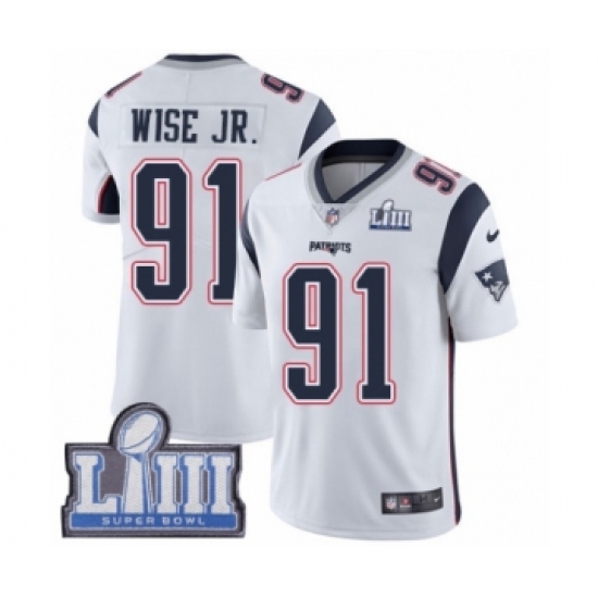 Youth Nike New England Patriots #91 Deatrich Wise Jr White Vapor Untouchable Limited Player Super Bowl LIII Bound NFL Jersey