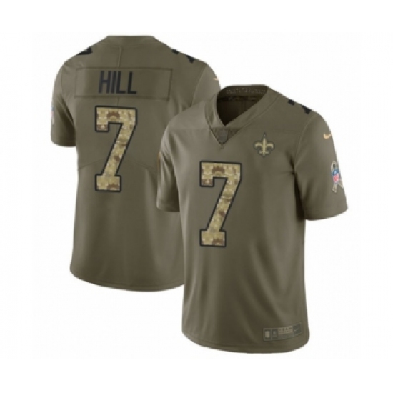 Youth Nike New Orleans Saints #7 Taysom Hill Limited Olive Camo 2017 Salute to Service NFL Jersey
