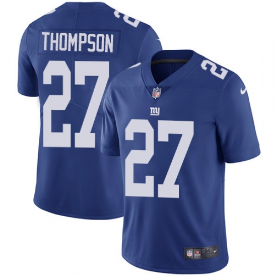 Home>NFL>New York Giants>Darian Thompson>Youth Nike New York Giants #27 Darian Thompson Royal Blue Team Color Vapor Untouchable Limited Player NFL Jersey