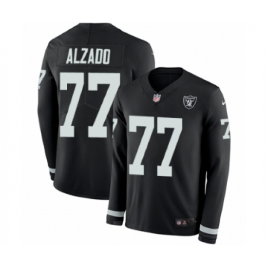 Men's Nike Oakland Raiders #77 Lyle Alzado Limited Black Therma Long Sleeve NFL Jersey