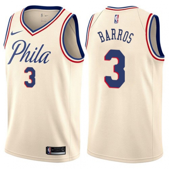 Home>NBA>Philadelphia 76ers>Dana Barros>Youth Nike Philadelphia 76ers #3 Dana Barros Swingman Cream NBA Jersey - City Edition
