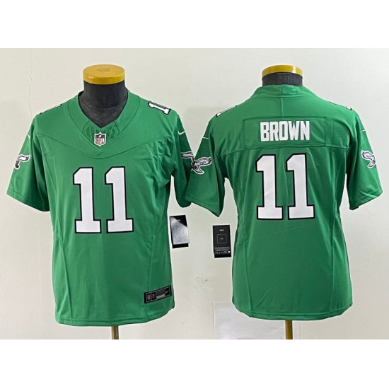 >Youth Nike Philadelphia Eagles #11 A.J. Brown Green 2023 F.U.S.E. Vapor Limited Throwback Stitched Football Jersey