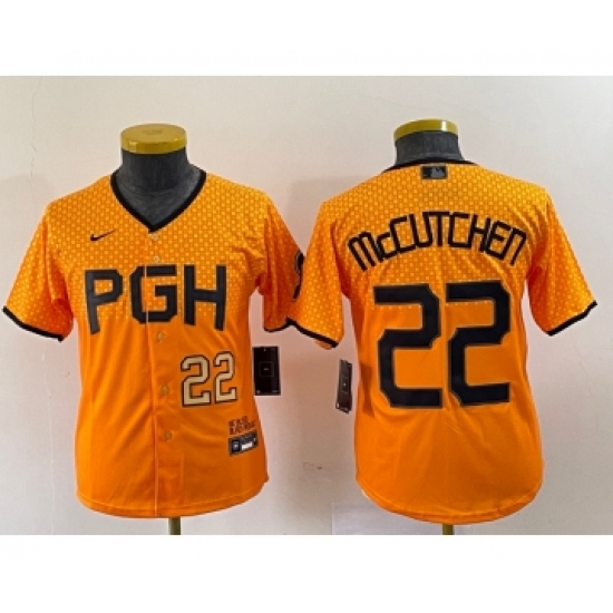 Youth Nike Pittsburgh Pirates #22 Andrew McCutchen Number Yellow 2023 City Connect Stitched Jersey1