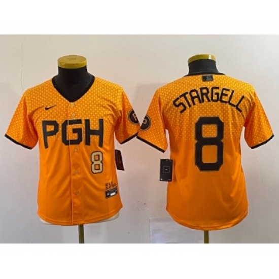 Youth Nike Pittsburgh Pirates #8 Willie Stargell Number Yellow 2023 City Connect Stitched Jersey1