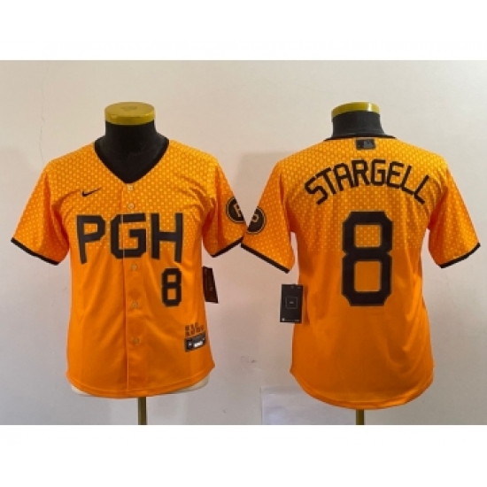 Youth Nike Pittsburgh Pirates #8 Willie Stargell Number Yellow 2023 City Connect Stitched Jersey5