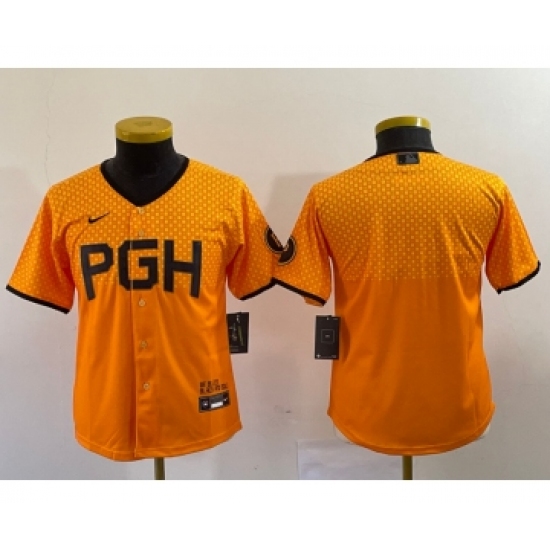 Youth Nike Pittsburgh Pirates Blank Yellow 2023 City Connect Stitched Jersey1